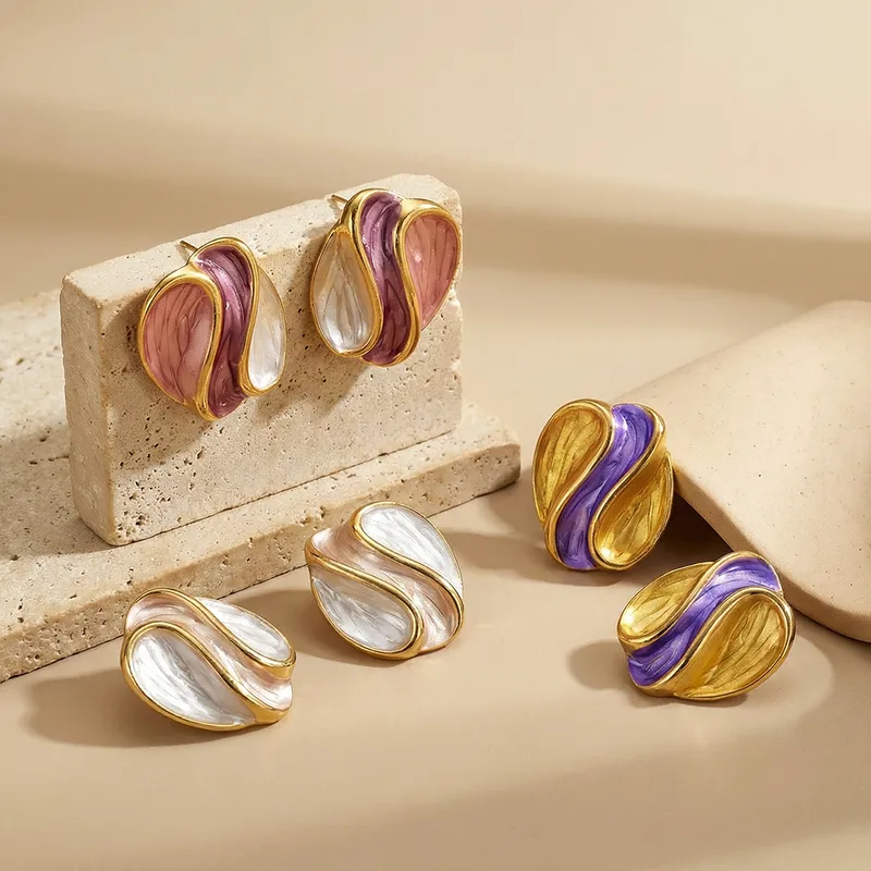 Σκουλαρίκια με Ακανόνιστο Σχέδιο από Ανοξείδωτο Ατσάλι 304 και Επιχρύσωση 18Κ