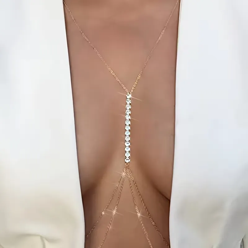 Αναδείξτε τη θηλυκότητά σας με αυτό το πολυμορφικό κόσμημα εξαιρετικής αισθητικής. Διαθέτει λεπτή χρυσή αλυσίδα διακοσμημένη με κομψές πέρλες, προσφέροντας διπλή χρήση: φορέστε το ως εντυπωσιακό κολιέ Y στο ντεκολτέ ή ως αισθησιακή αλυσίδα πλάτης για να στολίσετε τα εξώπλατα φορέματά σας.