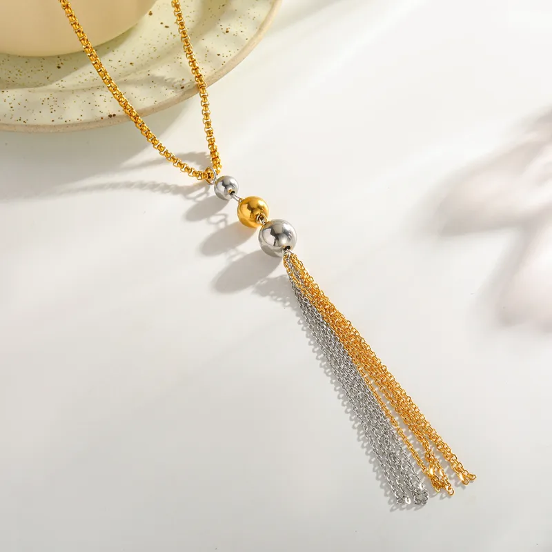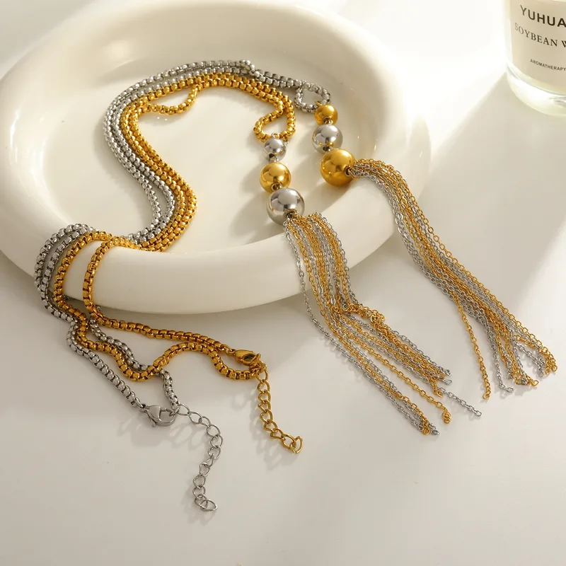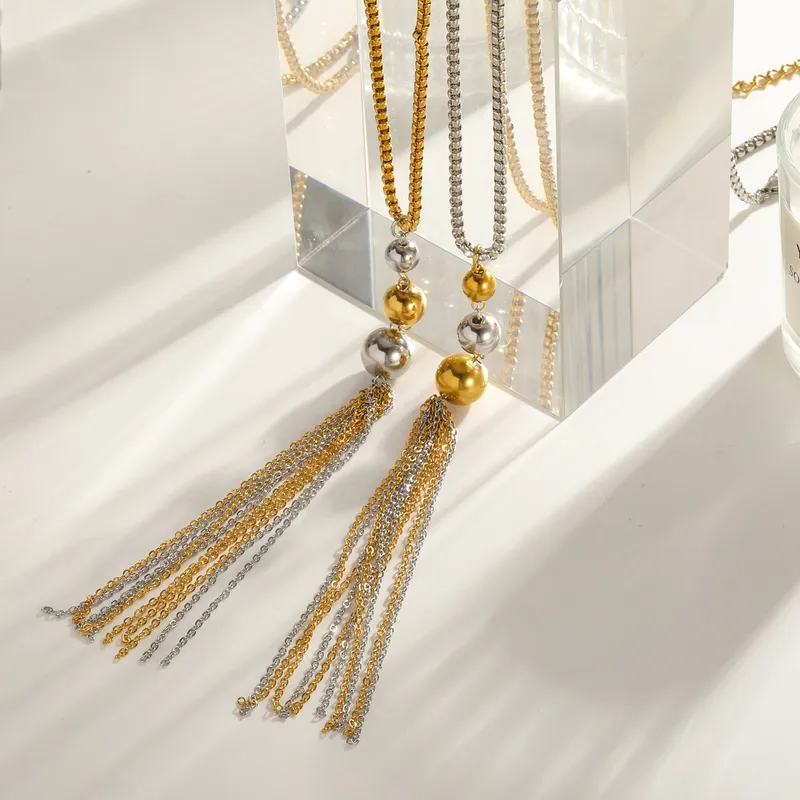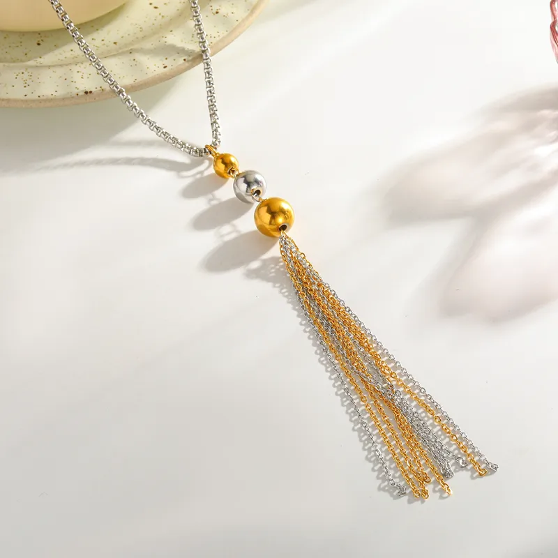 Αυτό το γυναικείο κολιέ δεν είναι απλώς ένα αξεσουάρ, αλλά μια δήλωση στυλ. Η τεχνική vacuum electroplating (επιμετάλλωση σε κλίβανο) εξασφαλίζει ότι το χρυσό χρώμα παραμένει ζωντανό και αναλλοίωτο για πολύ μεγαλύτερο χρονικό διάστημα από τα κοινά κοσμήματα. Το στρογγυλό στοιχείο σε συνδυασμό με την αλυσίδα-φούντα δημιουργεί μια αίσθηση κίνησης που τραβάει τα βλέμματα.