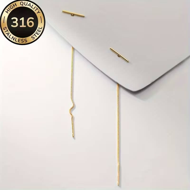 Αποκτήστε αυτά τα κομψά και διακριτικά κρεμαστά σκουλαρίκια. Το μοντέρνο σχέδιο με την αλυσίδα που καταλήγει σε μπάρα προσφέρει μια αίσθηση κομψότητας και minimal αισθητικής. Είναι κατασκευασμένα από ανοξείδωτο ατσάλι 316, καθιστώντας τα υποαλλεργικά, ανθεκτικά στη φθορά και ιδανικά για καθημερινή χρήση. Διατίθενται σε ασημί και χρυσό χρώμα.