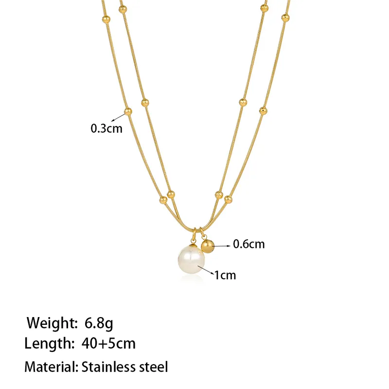 Αυτό το διπλό κολιέ συνδυάζει κλασική κομψότητα και μοντέρνο στυλ. Είναι κατασκευασμένο από αδιάβροχο ανοξείδωτο ατσάλι 304 και διαθέτει επίστρωση PVD με 18K χρυσό, εξασφαλίζοντας ανθεκτικότητα και λάμψη που διαρκεί. Το κολιέ κοσμείται με ένα εντυπωσιακό μαργαριτάρι και ένα μικρότερο χρυσό στοιχείο, προσθέτοντας μια εκλεπτυσμένη πινελιά σε κάθε εμφάνιση.