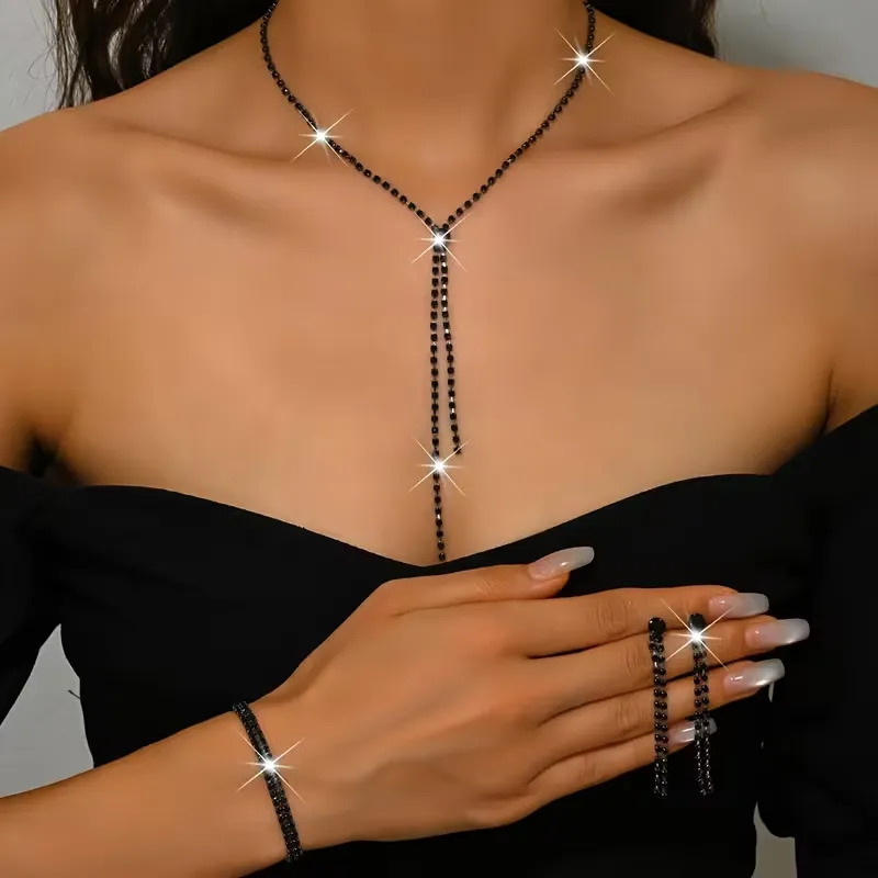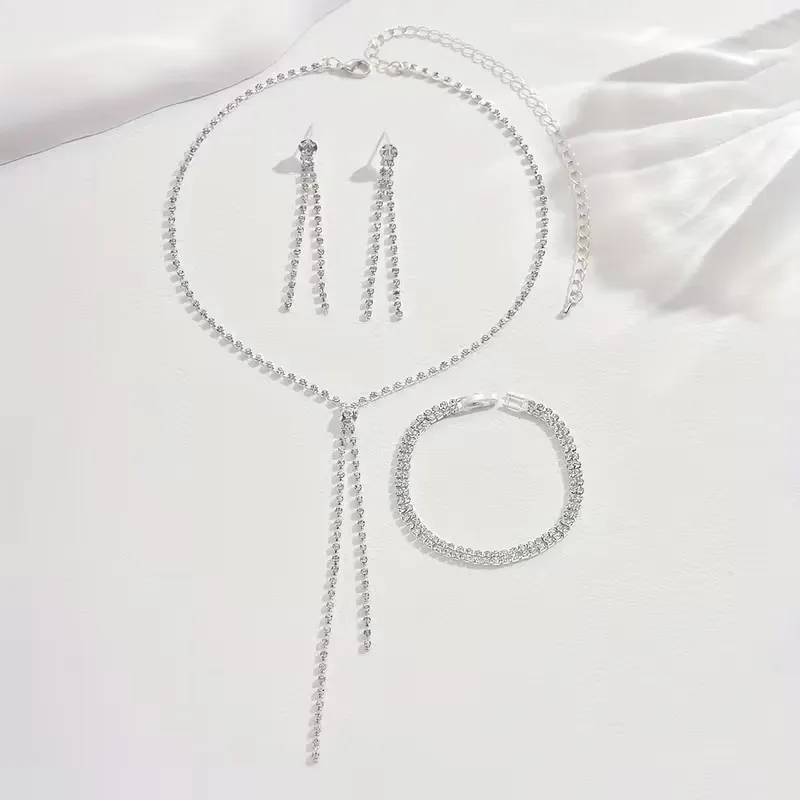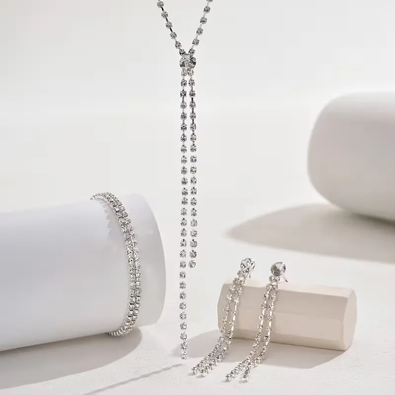 Σετ Γυναικεία Κοσμήματα 3 Τεμαχίων – Κολιέ Y-Shape, Βραχιόλι & Σκουλαρίκια με Στρας