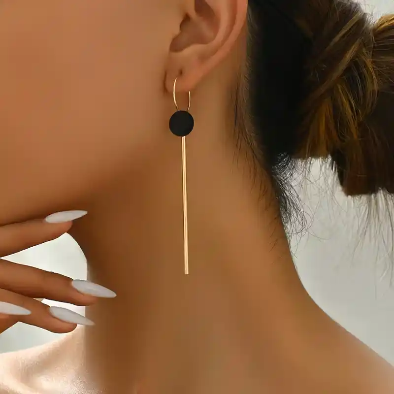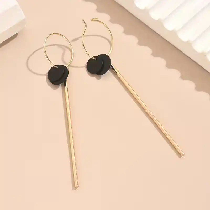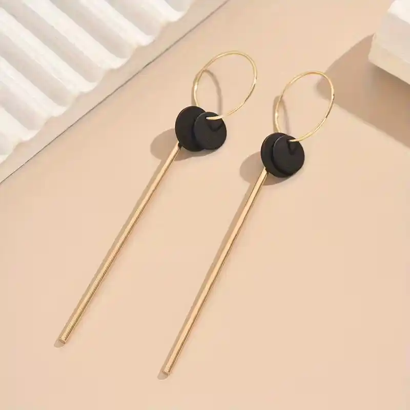Μακριά Γεωμετρικά Σκουλαρίκια με Μαύρους Δίσκους και Minimal Μπάρα