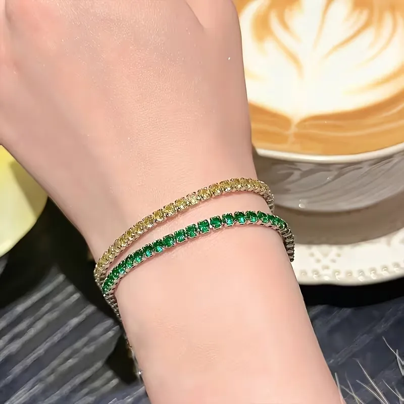 Προσθέστε μια πινελιά πολυτέλειας με αυτό το κλασικό βραχιόλι ριβιέρα. Είναι διακοσμημένο με λαμπερά ζιργκόν υψηλής ποιότητας. Διατίθεται σε εντυπωσιακά χρώματα όπως σμαραγδί, ρουμπινί και ζαφείρι. Το κομψό λεπτό βραχιόλι είναι ιδανικό για εντυπωσιακό layering. Διαθέτει ασφαλές κούμπωμα και ανθεκτική κατασκευή. Είναι το τέλειο δώρο για γυναίκες που αγαπούν τη διαχρονική λάμψη.