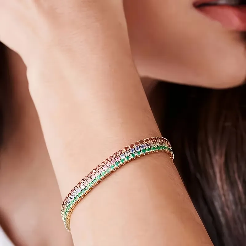 Βραχιόλι Ριβιέρα με Πολύχρωμα Ζιργκόν και Επιχρύσωση 18Κ